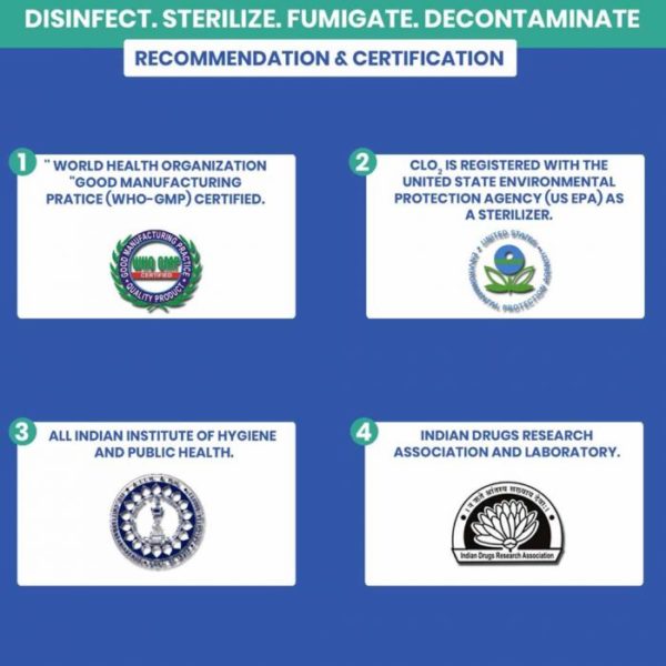 The same molecule is already approved or recommended by WHO, US-EPA, FDA for disinfection, Sanitization, Fumigation of Air, Surface etc.